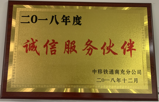 我公司獲得中移鐵通南充分公司頒發(fā)的誠信服務(wù)伙伴認(rèn)證