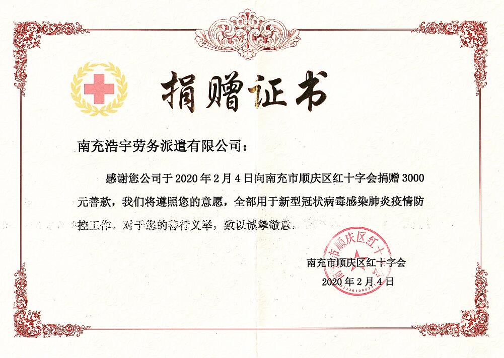我公司向南充紅十字會捐贈3000元用于抗擊疫情